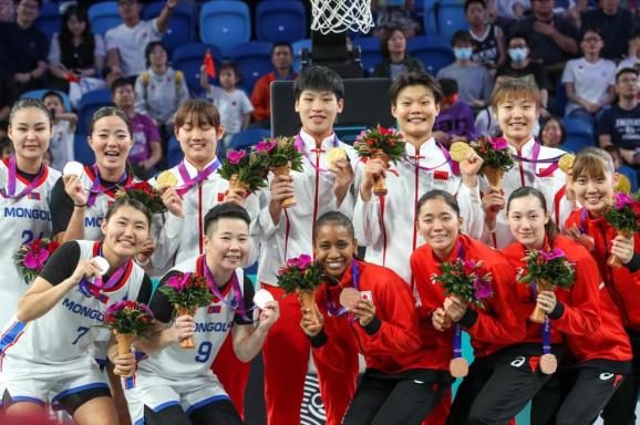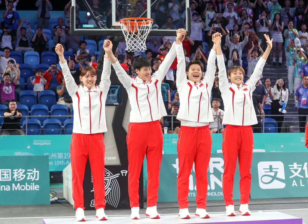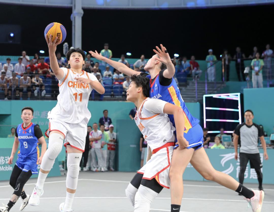 在今晚8点举行的三人篮球项目女子决赛中,万济圆、陈明伶、王家绘、王馨雨组成的中国女队以21:12的比分战胜蒙古队,勇夺冠军。