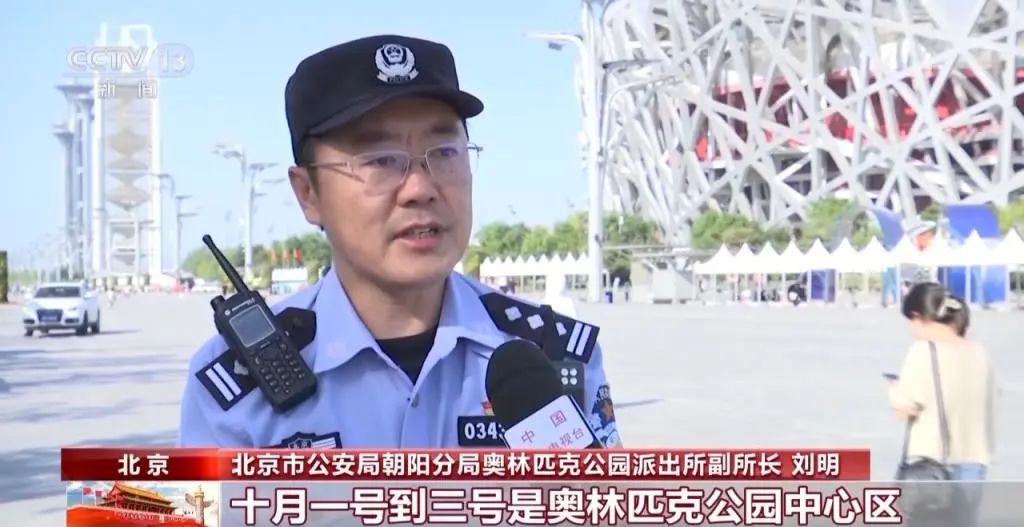 北京市公安局朝阳分局奥林匹克公园派出所副所长刘明在接受采访时表示,十月一日到三日是奥林匹克公园中心区游览的高峰期,今年的情况十月二日会达到一个游览的顶峰,我们建议有条件的话请您错峰出游。同时警方提醒您,如果您在旅游的过程中,遇到非法一日游、强买强卖、黄牛倒票等欺诈行为,请及时向警方进行举报。