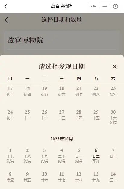 故宫博物院购票约展平台显示,10月1日至5日均已约满。