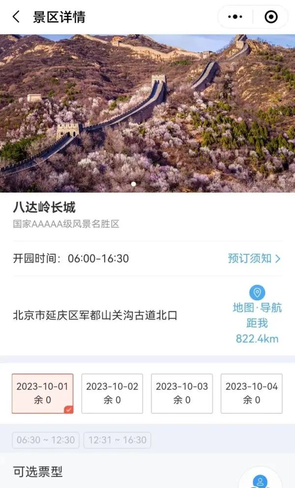 景区官方购票系统显示,八达岭长城10月1日至10月4日门票已售罄。