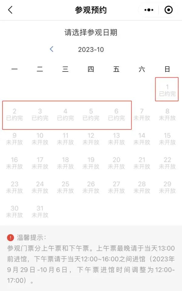 广东省博物馆线上预约系统显示,9月30日至10月5日的参观时段均已被约满。