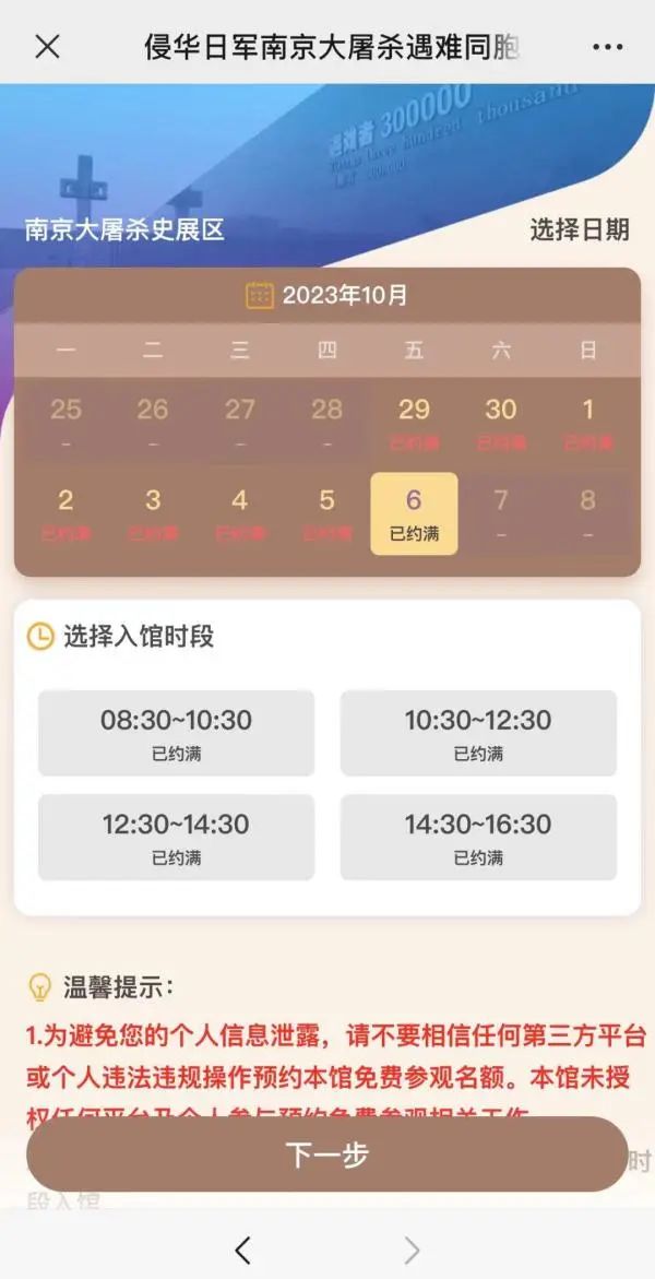 侵华日军南京大屠杀遇难同胞纪念馆南京大屠杀史展区,9月29日至10月6日已全部约满。