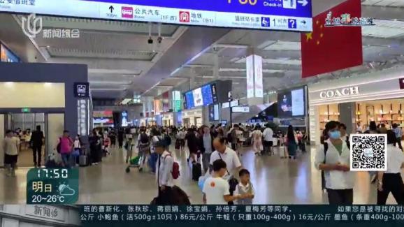 9月30日上午九点,铁路上海虹桥站出发层里人潮涌动,很多旅客步履匆匆检票进站。安检口、候车室、各通道,车站工作人员一刻不停地维持秩序。