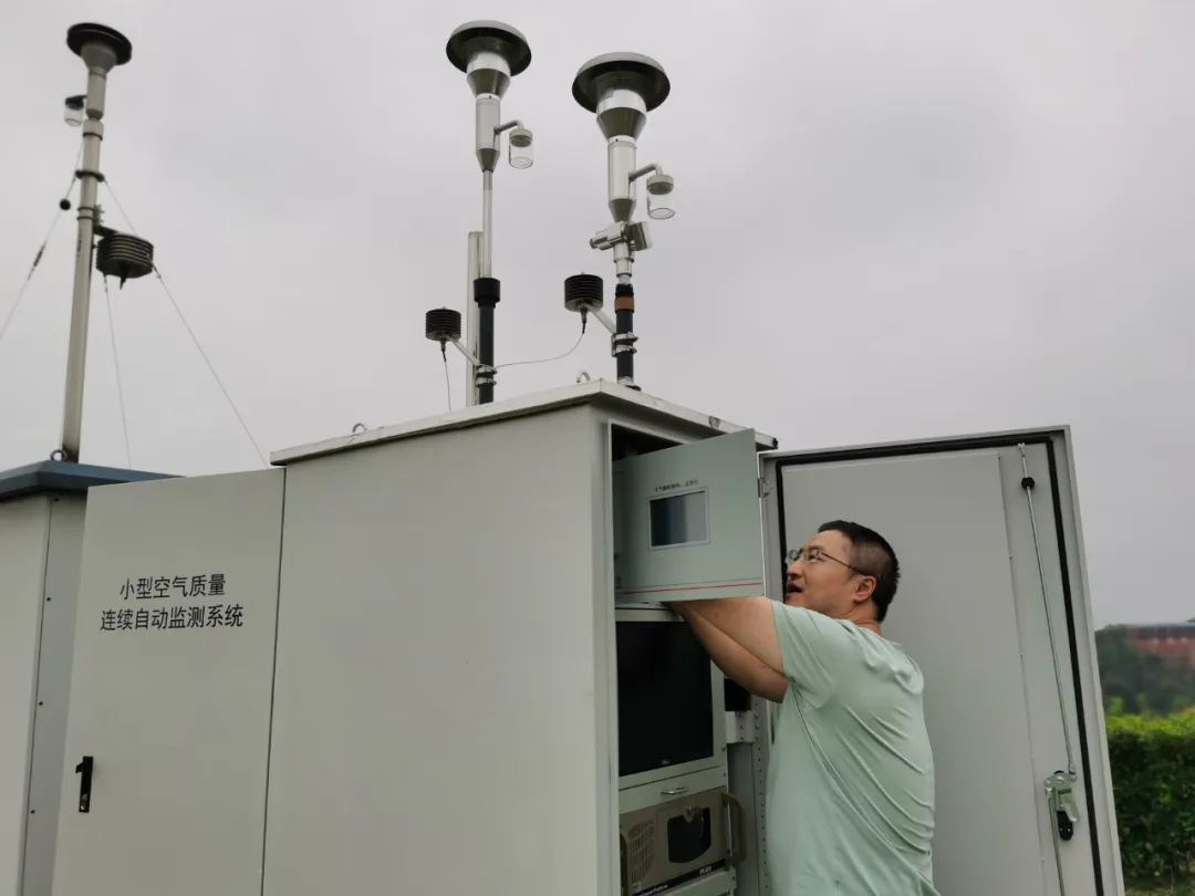 假日期间,重庆市合川区气象局的工作人员及时更换小型空气质量连续自动监测系统的颗粒物滤纸带 摄影/文:林小红四川