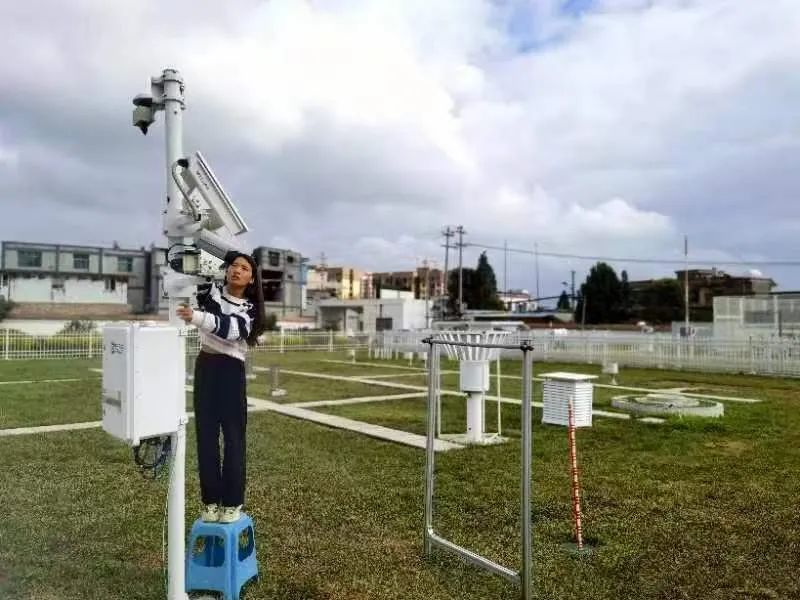 假日期间,贵州省毕节市威宁县气象局组织观测工作人员对威宁国家基准气候站天气现象视频智能观测仪开展维护检查 摄影/文:杨承梅
