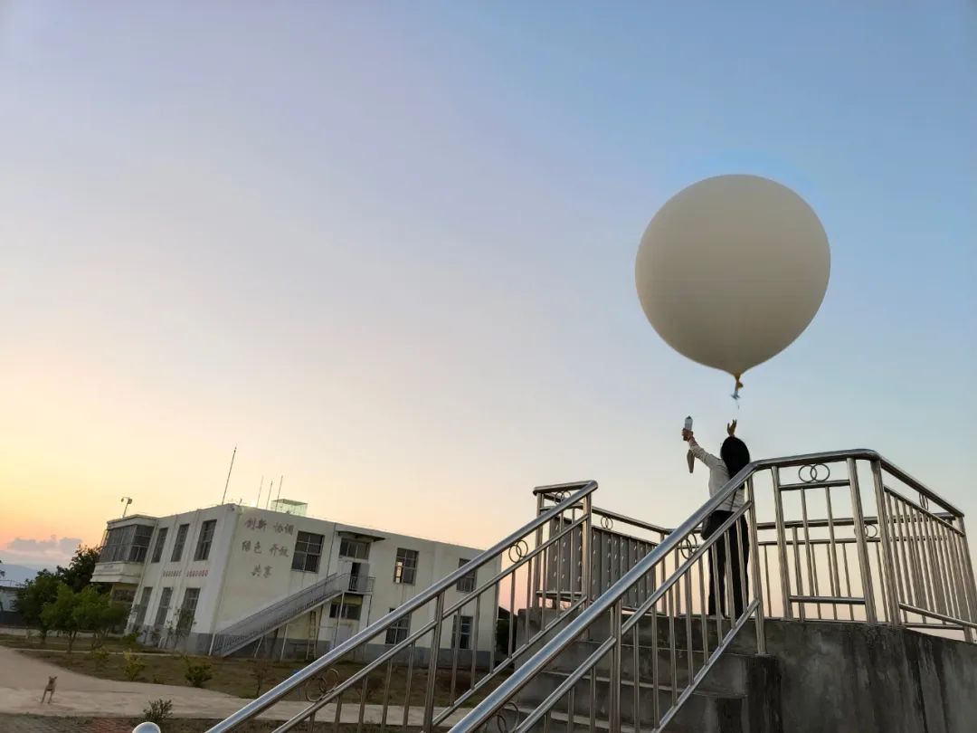 “十一”国庆假期,云南省蒙自市探空站的业务人员正在施放探空气球 摄影/文:黄彩娥
