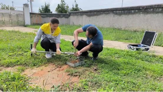 “十一”国庆假期,云南省曲靖市马龙区气象局的工作人员为土壤水份监测站建设前期对比观测做取土、烤土工作 摄影/文:丁仲鑫