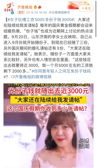 原标题:《份子钱才是“钱包刺客”!8天假4场婚礼,有人花费超1万》