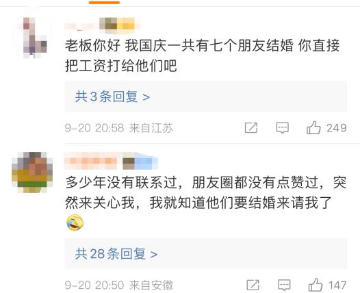 于是评论区的网友们集体炸锅,掰着指头数起了自己国庆节期间得搭出去多少份子钱。