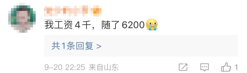 比如这位来自山东的网友,工资4000,随礼6200;