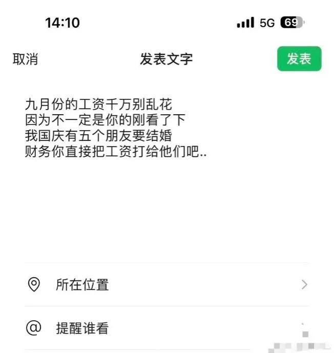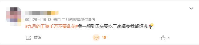 放假前几天,一则微博热搜给出了“暖心”小贴士:#九月的工资千万不要乱花#。