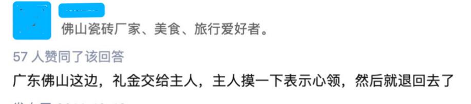 几年过去了,广东地区还是一如既往的令人羡慕。尤其是在广东佛山的顺德等地区,甚至一分钱不收,红包撕个角代表受礼,红包原封不动地还给你。