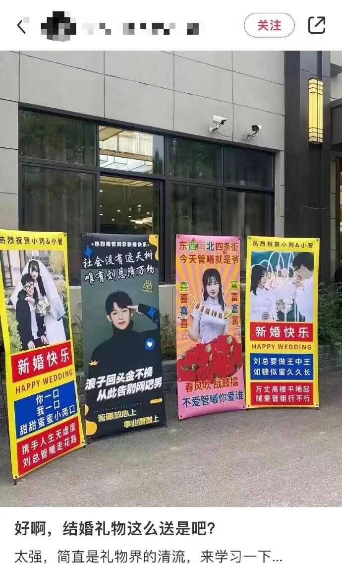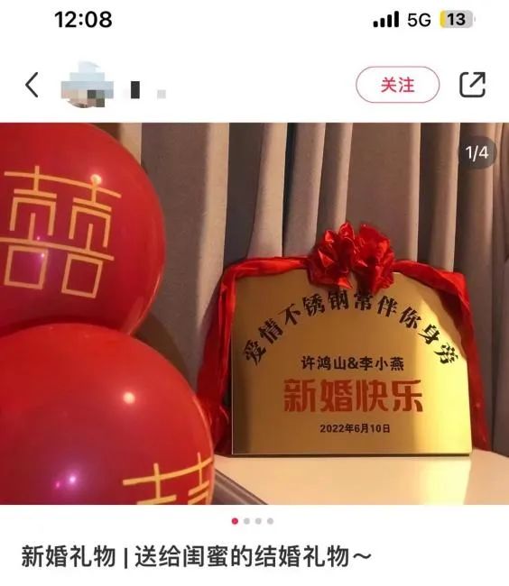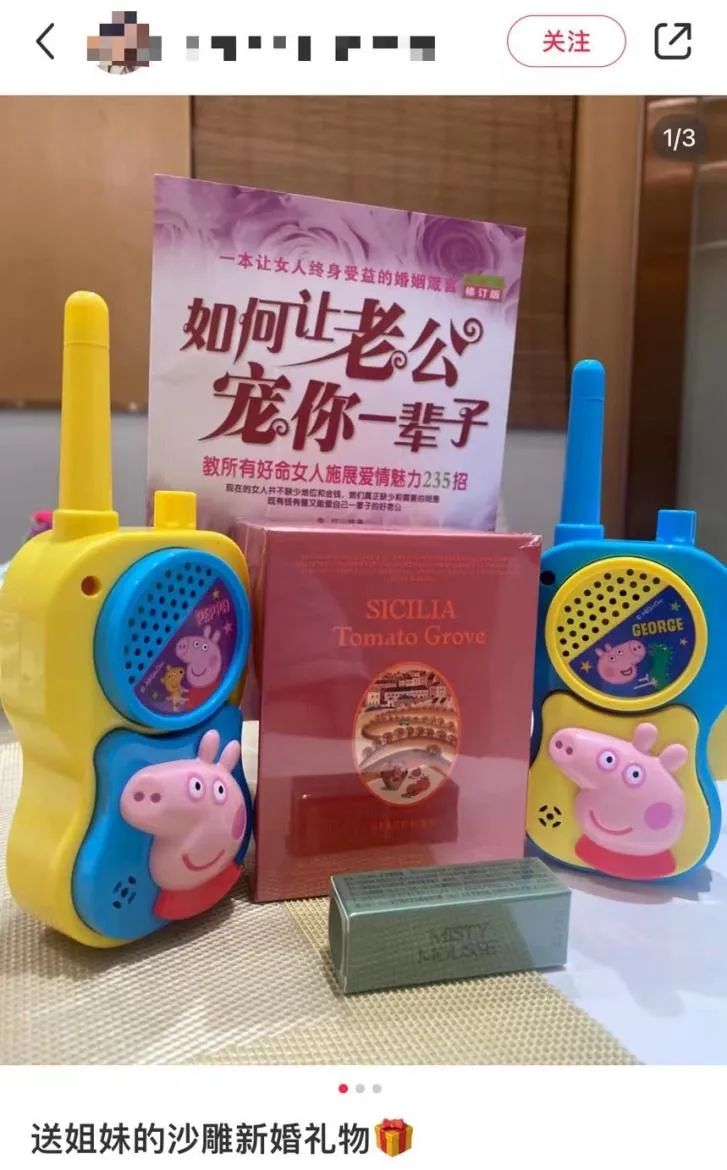 在纠结了很久到底送什么礼物以后,画风逐渐走向离谱,小红书上就有不少网友分享了自己收到或者送出的沙雕新婚礼物。