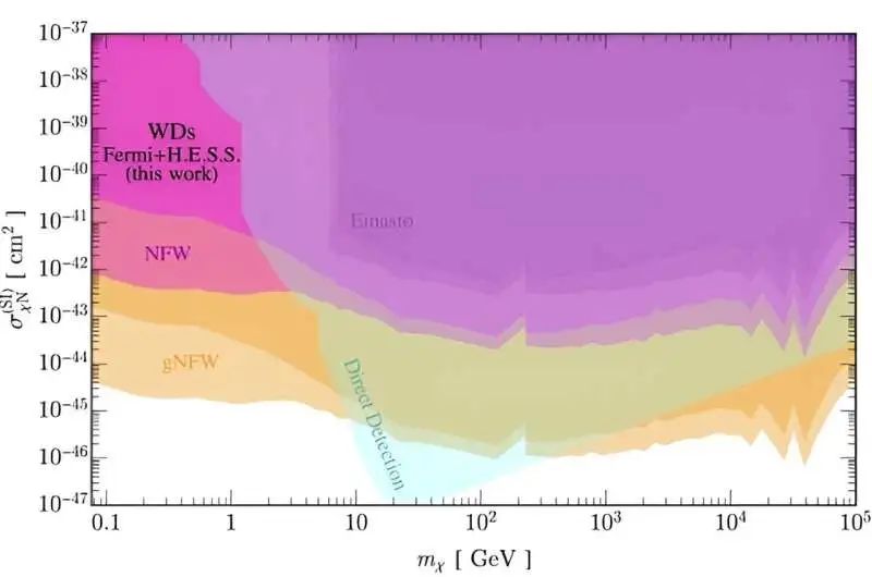 作为一个例子,研究小组考虑了一个简单的白矮星模型,完全由碳-12组成。然后,他们考虑了三种粒子模型的暗物质捕获,具有轻质,中等和重质。然后,他们计算了暗物质粒子与白矮星中常规物质核子之间的相互作用截面。由此,他们根据目前的观测确定了暗物质的观测限制。