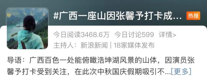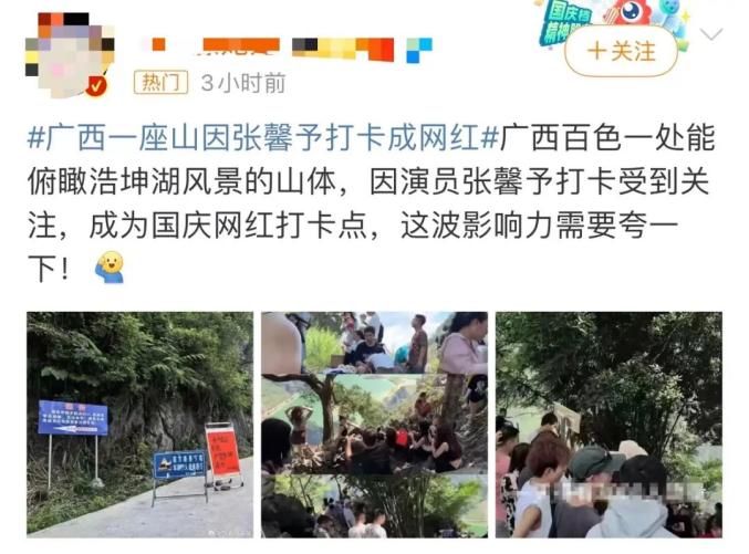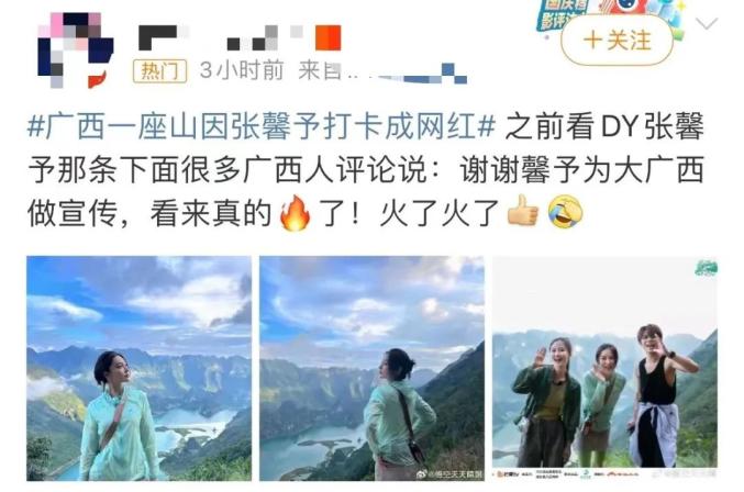 10月3日,#广西一座山因张馨予打卡成网红#登上热搜。