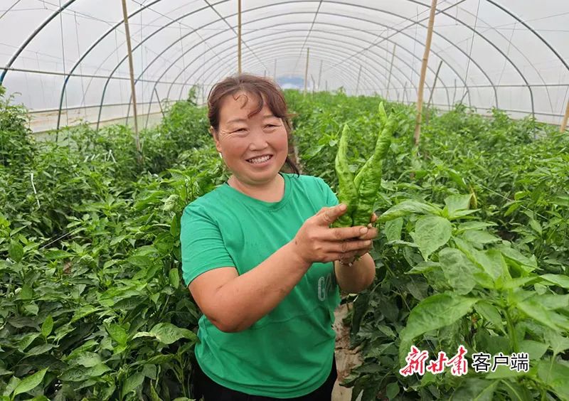 泾川县玉都镇辣椒种植大户李美丽喜获丰收。新甘肃·甘肃日报记者 田丽媛