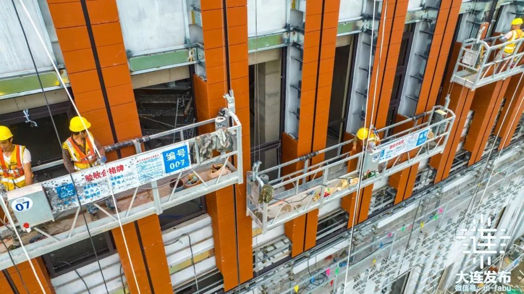 目前,具备施工条件的8个地块、17个单体主体结构全部封顶,二次结构施工处于收尾阶段。正在进行外幕墙、内部装饰装修和机电安装施工。年底前,在建14.7万平建筑物的幕墙施工将全部完成,机电工程及装饰装修工程也基本接近尾声。
