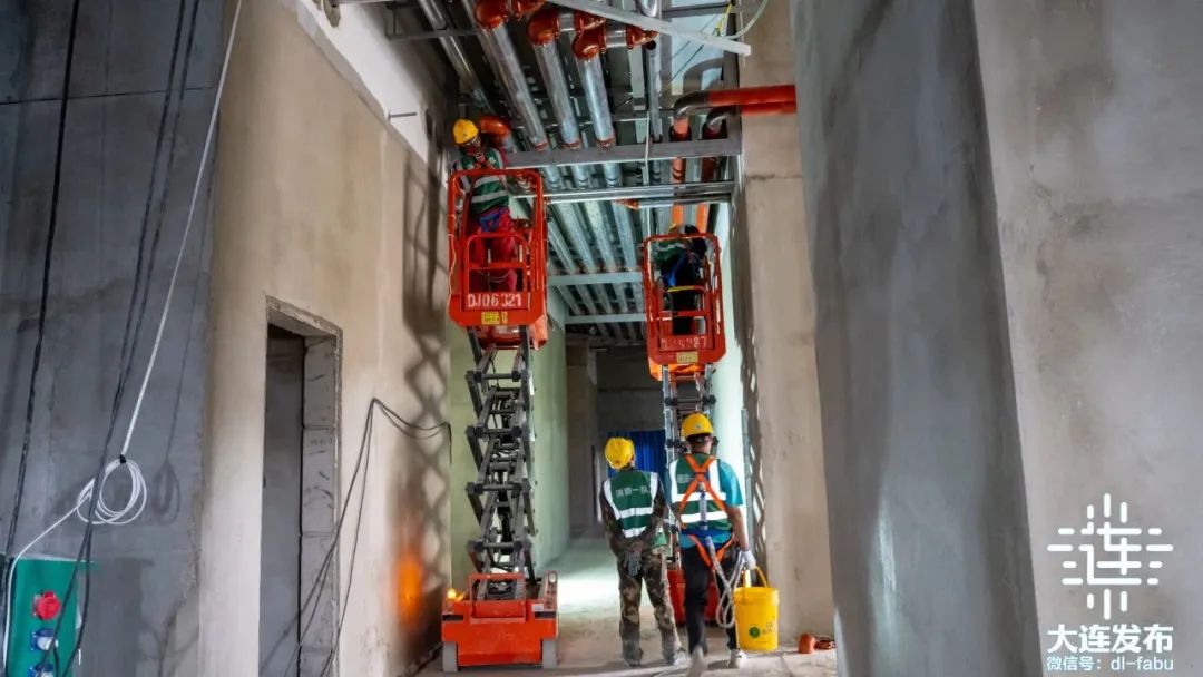 负责项目机电安装的中建安装东北公司项目现场负责人闫宁康介绍,目前,一期土建施工正在进行室内装饰装修及外幕墙施工,机电安装施工正在大干快上。