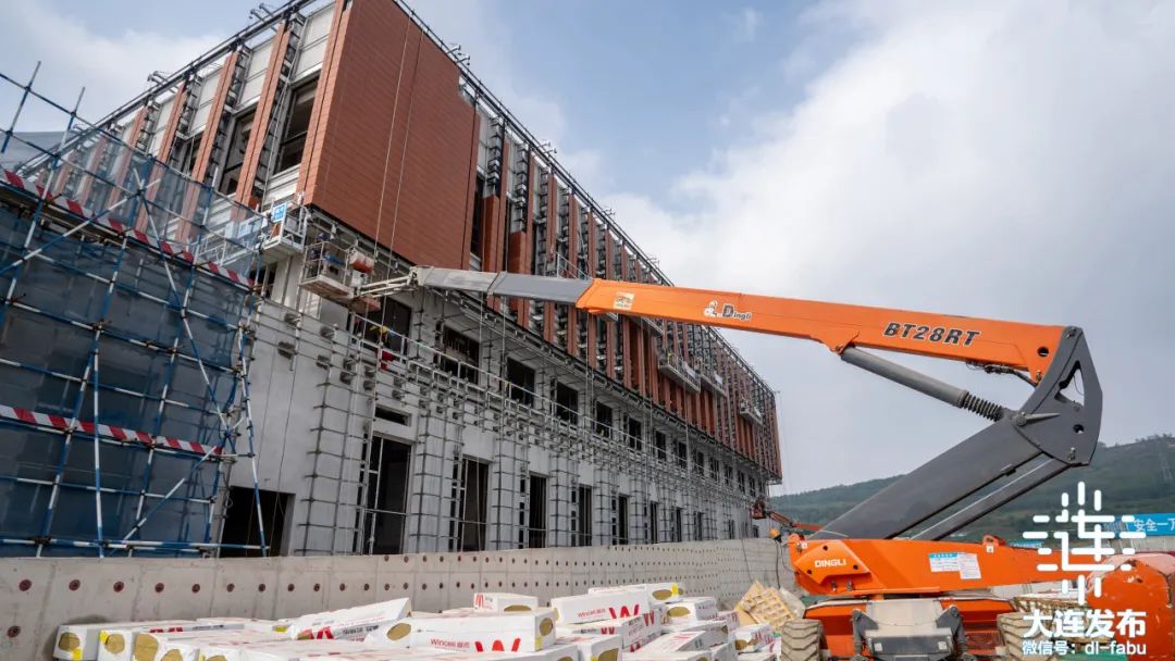 英歌石科学城A3-13地块,是英歌石科学城一期首开区二标段首个封顶的单体建筑,未来这里将是大连化物所的氢能与多能融合实验室。目前,这个实验室的主体结构已全部完成,正在进行外立面幕墙施工以及内部的装饰装修和机电管线的安装。