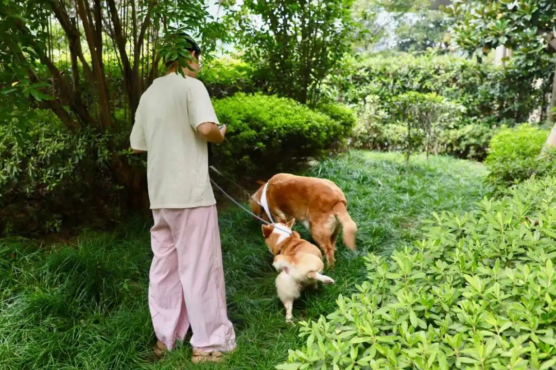 来到第一户人家,敢敢按照顾客的下单需求,除了为“留守”小狗增添食物和水外,还要在小区内遛狗,整个流程需要30分钟左右。