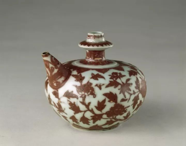 清代康熙朝曾仿烧永乐和宣德时的白釉、红釉僧帽壶。