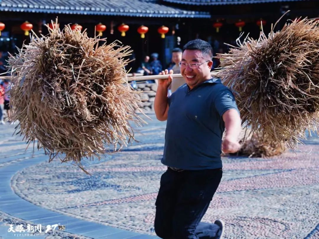 游客在西江千户苗寨参加挑稻草比赛 西江千户苗寨景区 供图西江千户苗寨景区人气高涨,有力带动了当地民宿发展。据介绍,“双节”假期以来,景区内民宿生意火爆,整体入住率达到90%以上。
