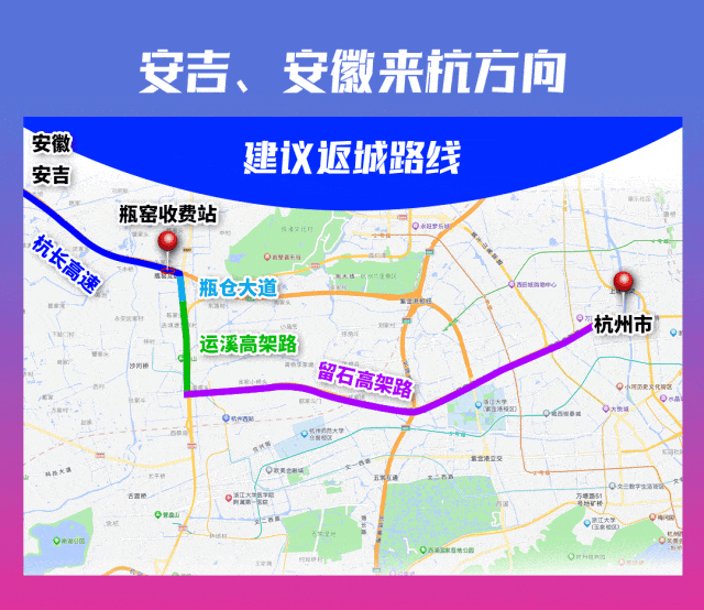 (五)安吉、安徽来杭方向杭长高速—瓶窑收费站—瓶仓大道—运溪高架路—留石高架路