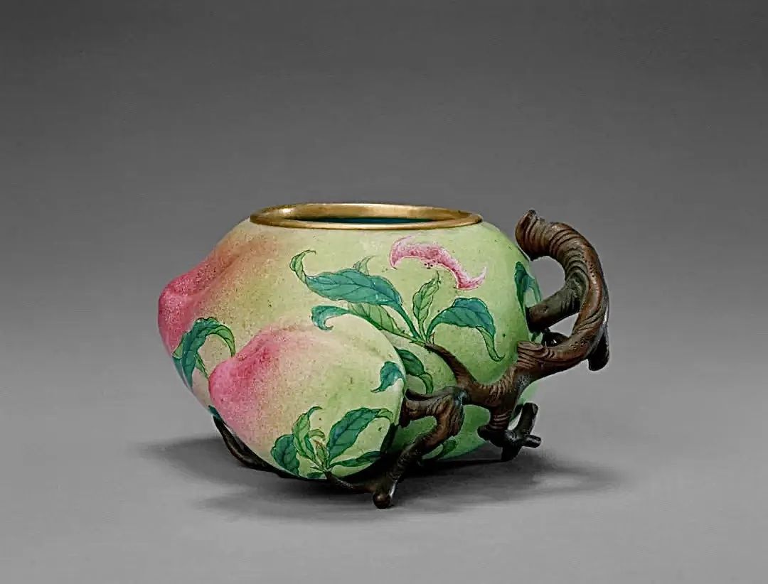 在雍乾的彩瓷中,桃子和蝙蝠都是重要的题材。