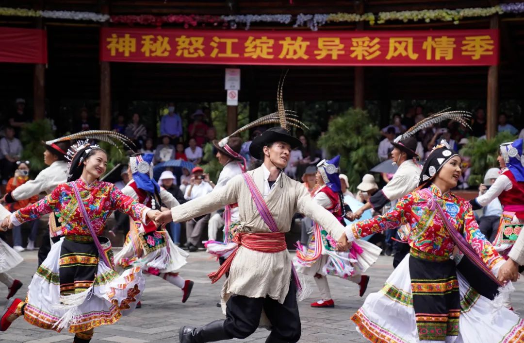 游客和演员在云南民族村一起欢度节日。