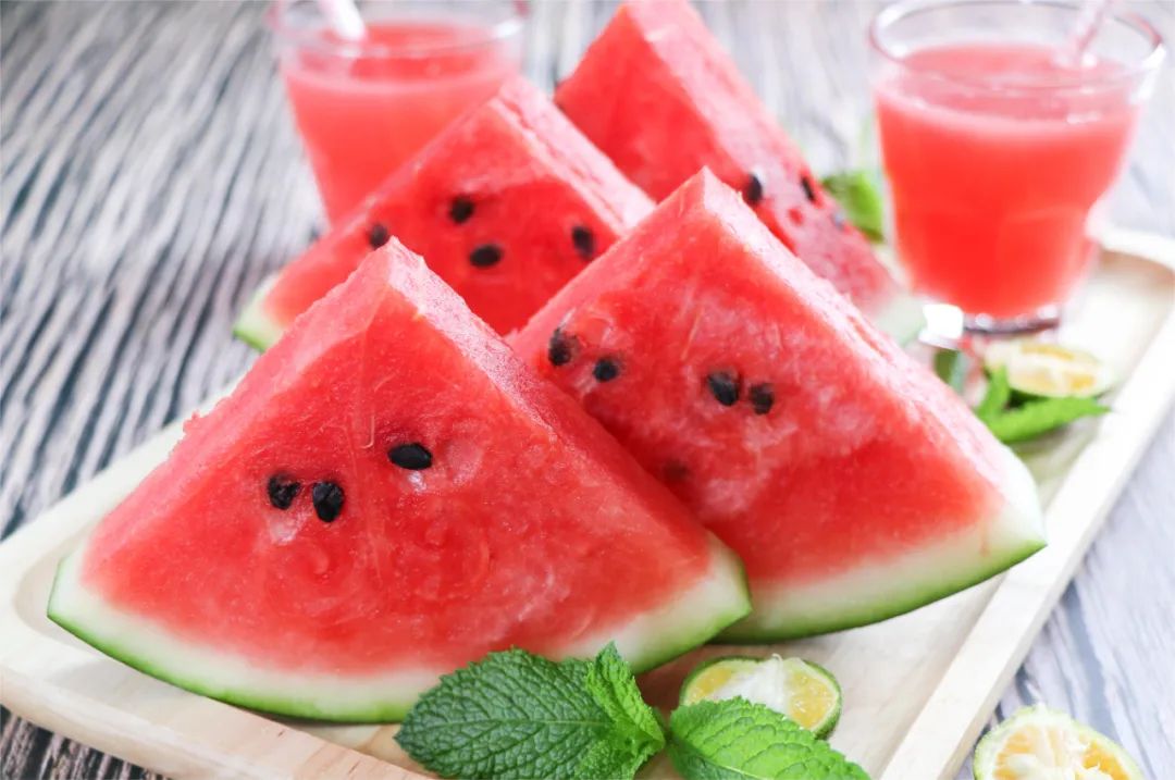 但我们还得把进食的量也需要考虑进去。我们通常说的GI值,是以食用50g可消化碳水化合物为标准来计算的。而西瓜里的含水量很高有90%左右,吃100g西瓜大概也就能吃进去7g左右的可消化碳水化合物,想要达到50g的标准,我们得先能吃进去一斤半的西瓜。