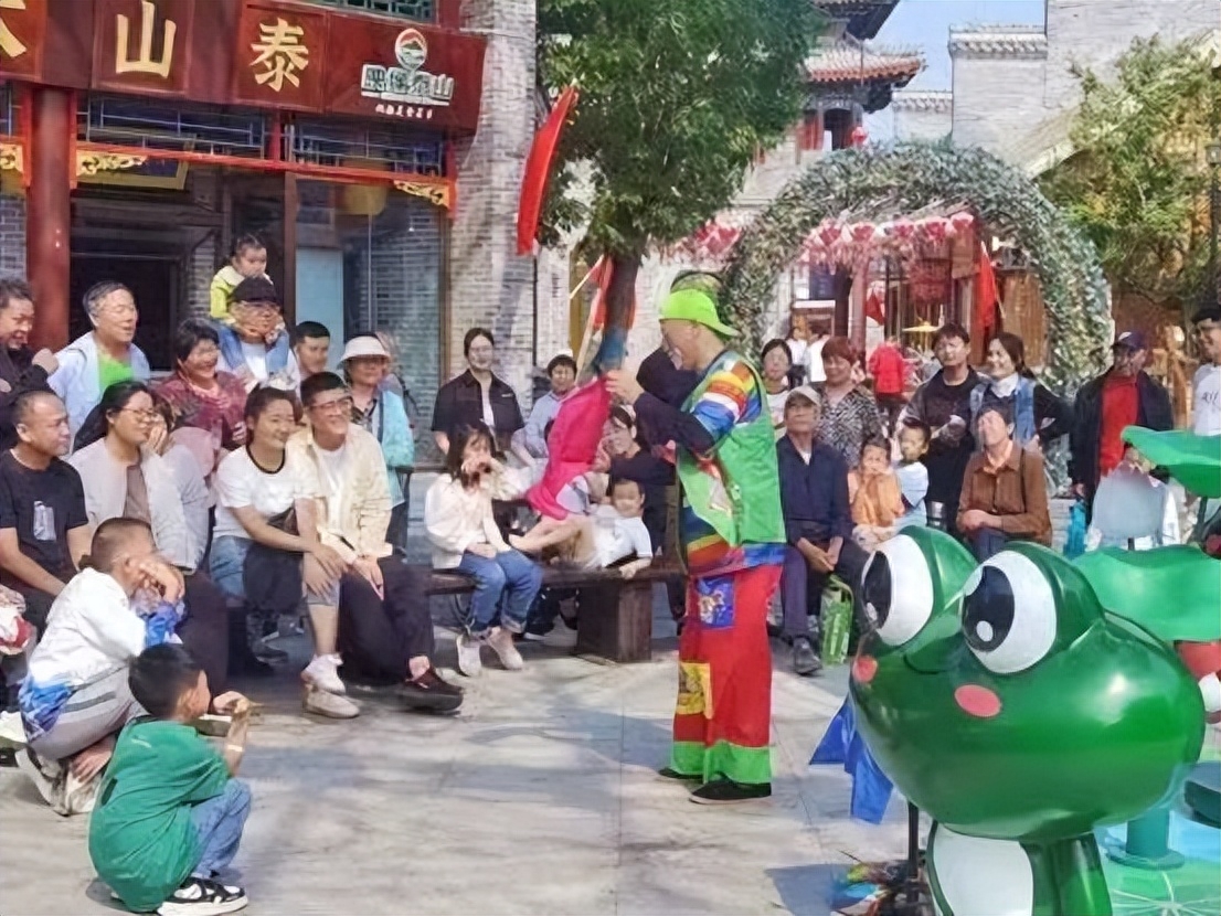 泰山秀城灯笼高挂,红旗飘扬,游客中心、演出剧场、商铺门前,喜庆元素随处可见,迎中秋、庆国庆氛围浓厚热烈。自开放运营以来,泰山秀城古风古貌的房屋街道、品类繁多的特色小吃、精彩震撼的《铁道游击战》演出……吸引着市内外游客纷至沓来。为了在“双节”期间更好满足游客假期游玩需求,泰山秀城特别推出了投壶、嫦娥仙子送月饼、小丑巡游、百米画卷绘秀城等活动,游客可以享受更加丰富多彩的游玩体验。