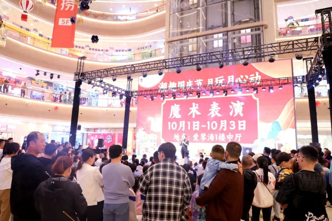 假日期间,国家级非物质文化遗产的传统杂技项目——风火流星在泰安老街喷泉广场精彩上演。泰安老街、爱琴海购物公园紧扣中秋与国庆主题,推出了“月玩月心动”“潮趣国庆节”两大系列活动,包括巨型月亮玉兔展、奇幻美人鱼、魔术表演、power大挑战、畅玩巨型保龄球、打卡兑奖等,让游客在购物的同时体验丰富有趣的节日活动。