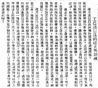 △《上海报》刊载的《工农通信员的建立与训练》一文