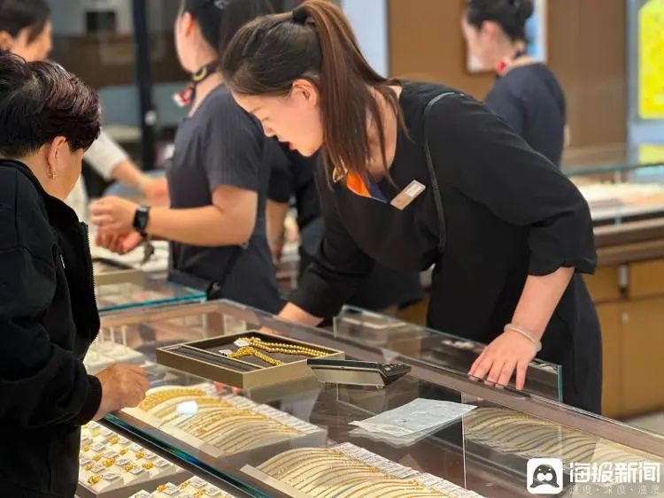 “国庆假期这几天的客流量较大,我们有克减30元的活动,再加上金价下跌,销量不错。”山东黄金济南泉城路店的店员赛姝告诉记者,促销活动叠加金价下滑,再加上泉城路的黄金位置,该店假期内的客流量有所增长,“‘黄金周’期间,客流量比平时高了四到五倍,假期内每日的营业额同比增长了25%左右。”