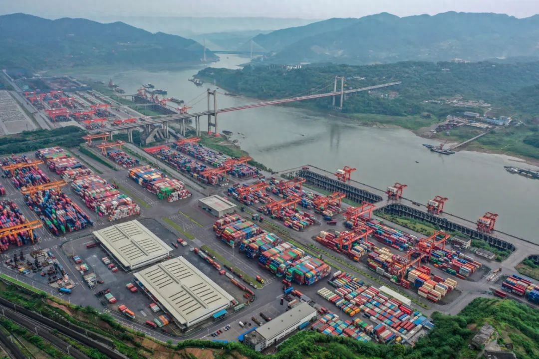 ▲ 位于长江重庆段的果园港,是我国内河最大的水铁公多式联运枢纽港。从小码头到长江上游最大港口,果园港向着更快捷、更智慧、更绿色快速“奔跑”,逐渐蜕变成为成渝地区双城经济圈开放门户和长江上游联通世界的“中转站”。摄影:新华社记者 唐奕