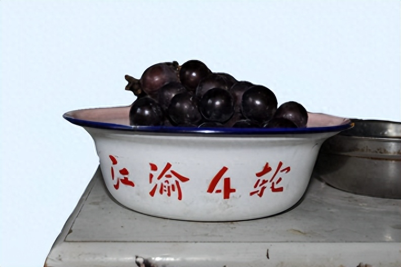 ▲ 写有“江渝4轮”字样的搪瓷碗。摄影:王轩供
