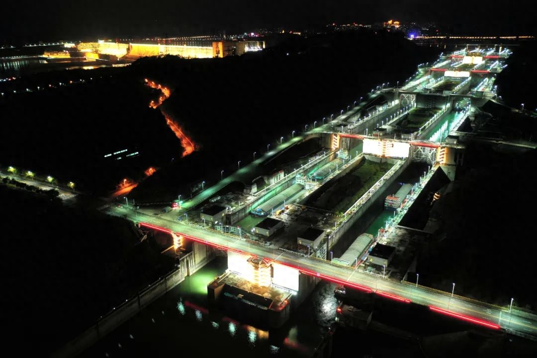 ▲ 三峡双线五级船闸夜景 摄影:汤伟