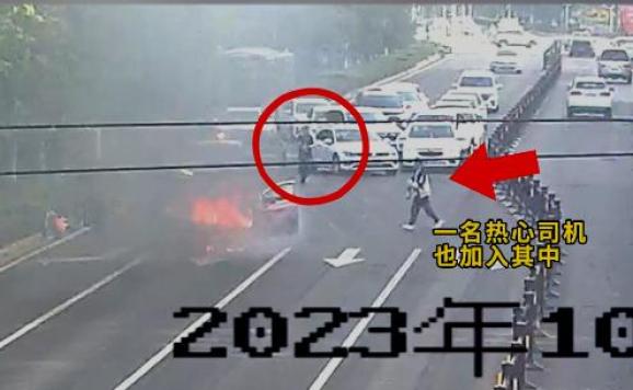 10月5日,交警大队九中队辅警吴松松与一名热心群众及时扑救一辆自燃的汽车,消除了道路安全隐患。
