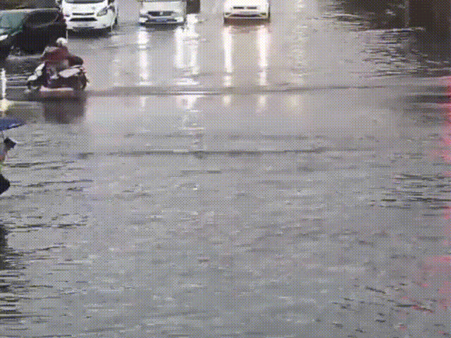 8月15日,泗阳县骤降暴雨,交警大队辅警庄春淮背老人过马路。