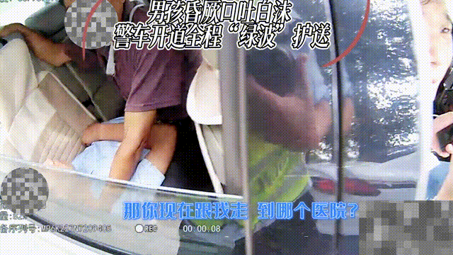 近日,交通大队辅警江成锐前方开道,将被开水烫伤的幼儿送往医院救治。