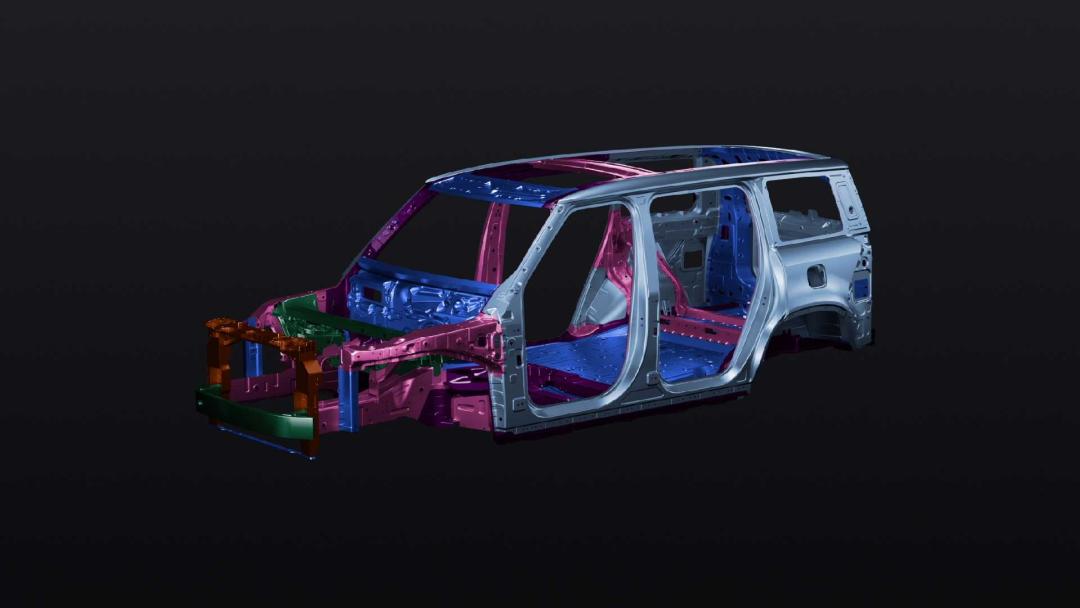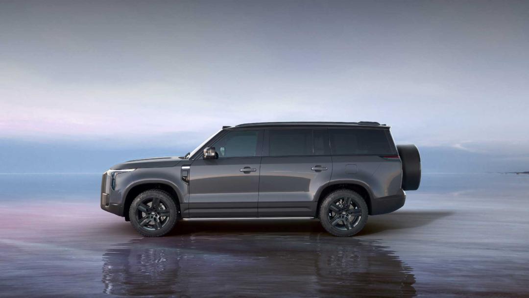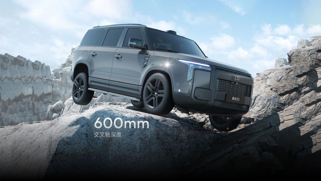 在外观设计上,极石 01 舍弃了新能源车常用的低风阻圆润造型,反而用上了大量直线条,希望用硬派越野外形和市面上的竞品打出差异化。乍一看确实挺硬派、挺越野的,就是线条有点致敬路虎卫士。