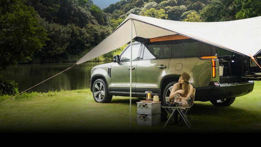 一厅:停车后搭配官方 270 °的车边天幕,单人五分钟就能搭建室外客厅。