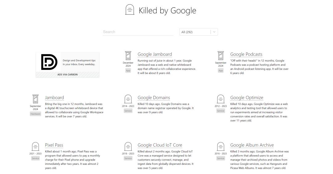 https://killedbygoogle.com/