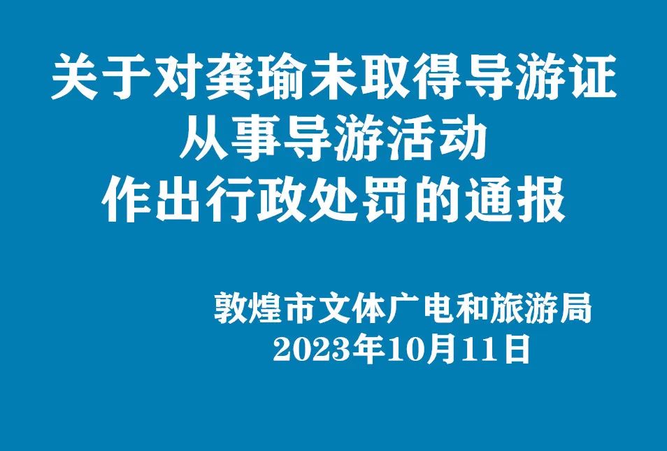 原标题:《【通报】关于对龚瑜未取得导游证从事导游活动作出行政处罚的通报》