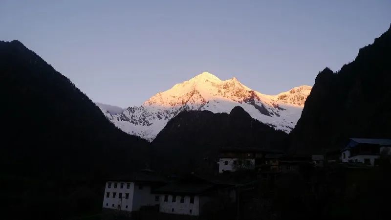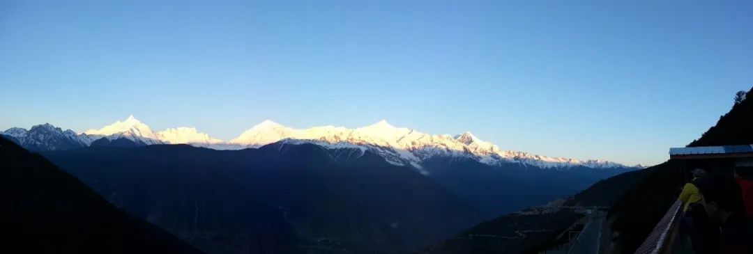 在徒步前一晚,我经受住心跳加速彻夜难眠的煎熬,克服高原反应。导游说阴天可能没日出,但我还是摸黑起早,意外却观照到梅里雪山的“日照金山”奇景。