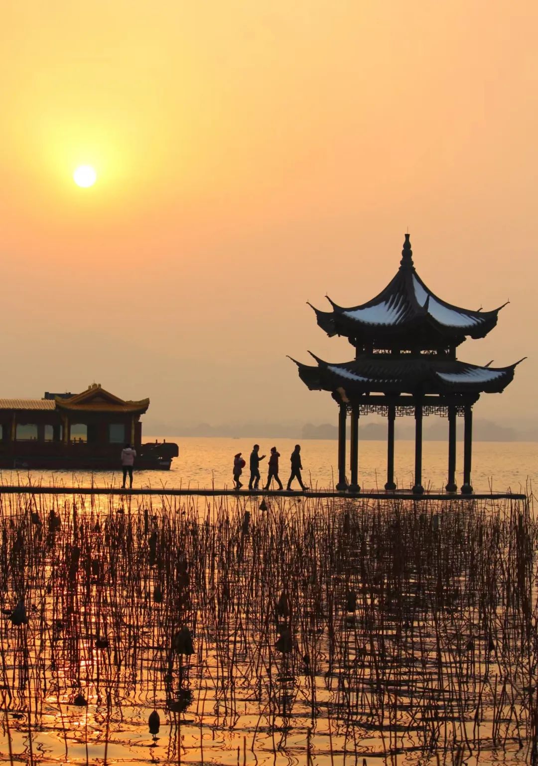 十月里的西湖,不同于夏日的绿意盎然,湖中的枯荷与亭檐的残雪别有一番风景,这是我的某一站旅程,看着游客在栈道上停留观赏,欣赏落日,夕阳洒在身上,内心久违的安静平和。