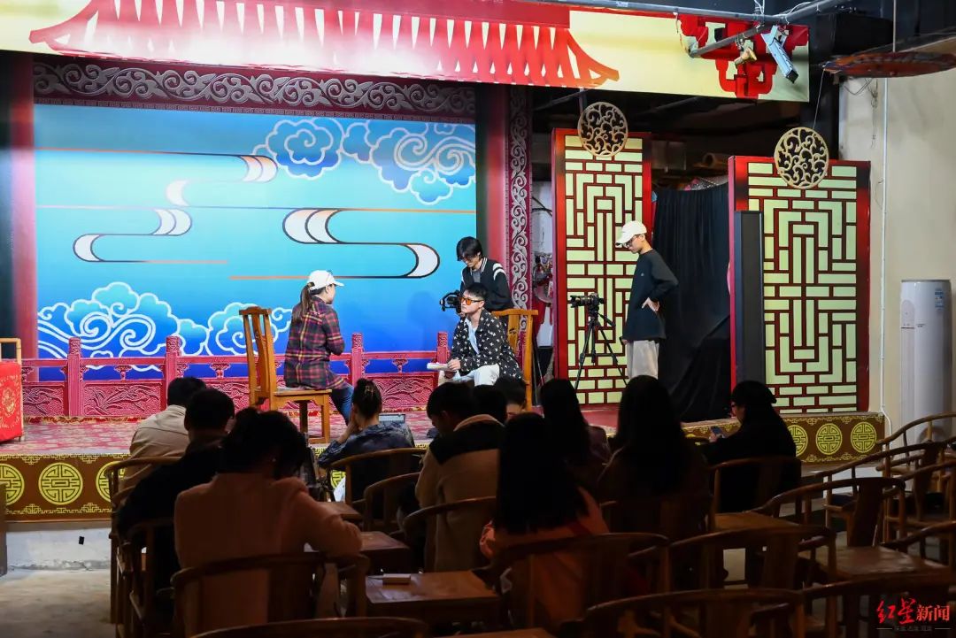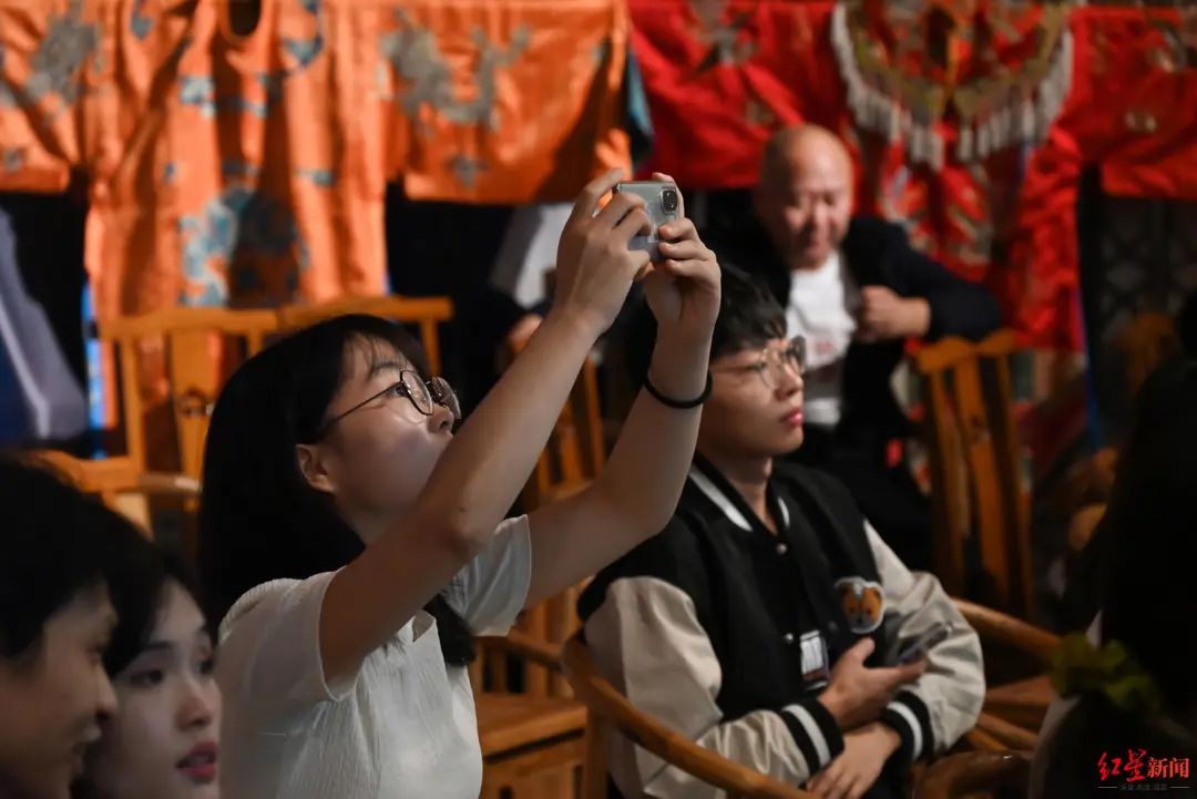 这里被网友称为“宝藏川剧团”,在社交平台上多个网友自发安利。不少人提着行李箱赶来看戏,还有大学生带上设备为它拍纪录片。