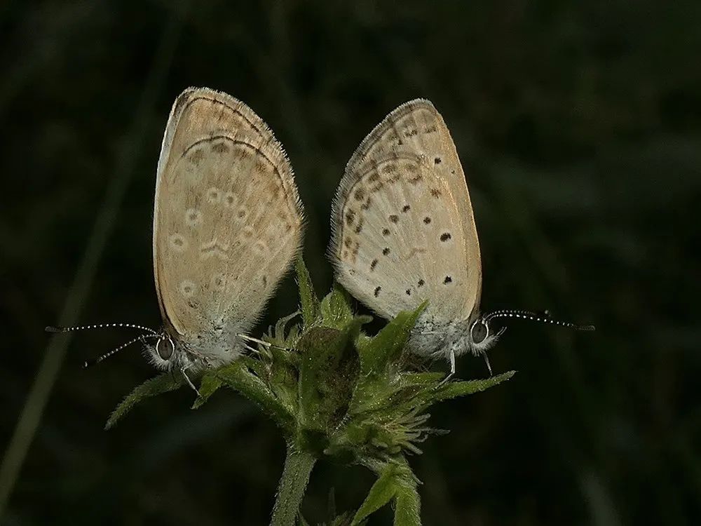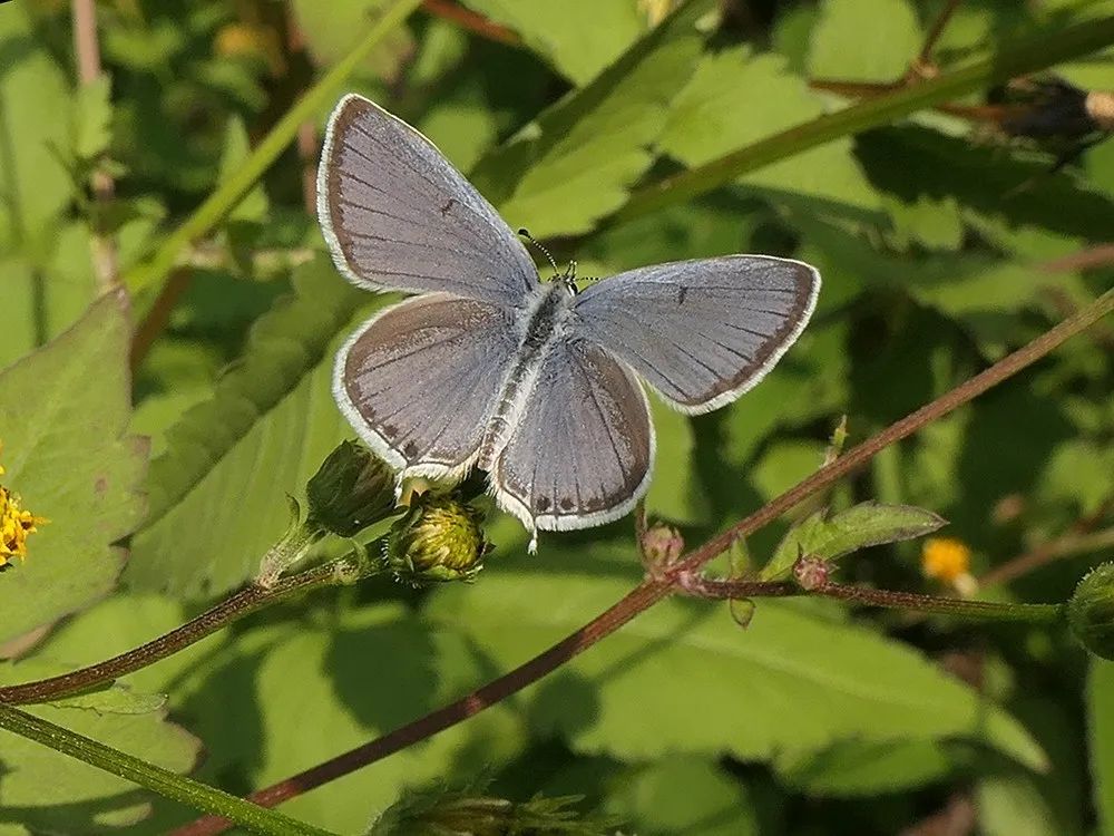 小型蝴蝶。雄蝶翅背面闪金属蓝光泽,而雌蝶基本为黑色,翅腹面淡褐色,黑色或褐色小斑点。酢浆灰蝶是上海地区最常见的小灰蝶之一,喜贴着地面飞,常访花吸蜜或在叶面上晒日光浴。12月之前都有机会看到它们。点玄灰蝶