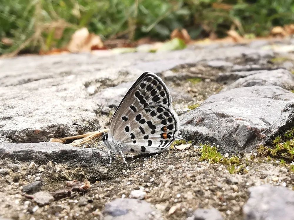 小型蝴蝶。翅背面黑色,翅腹面白色,有许多黑色小斑点。蚜灰蝶常在竹林及附近活动,它们幼虫以蚜虫为食,是绿化养护工人的好帮手!12月之前可见。红灰蝶