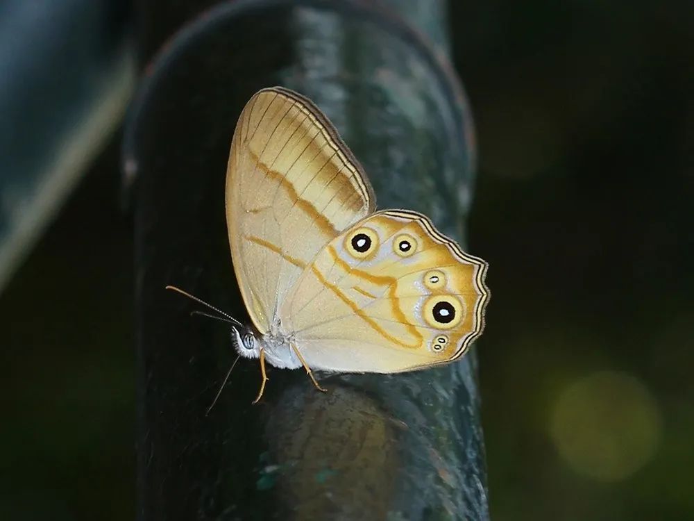 中型蝴蝶,翅膀淡黄褐色,具有眼状斑纹。喜欢在竹林里活动,整个秋季都能见到,在上海地区,松江佘山、天马山等地是它们主要栖息地。11月之前可见。稻眉眼蝶